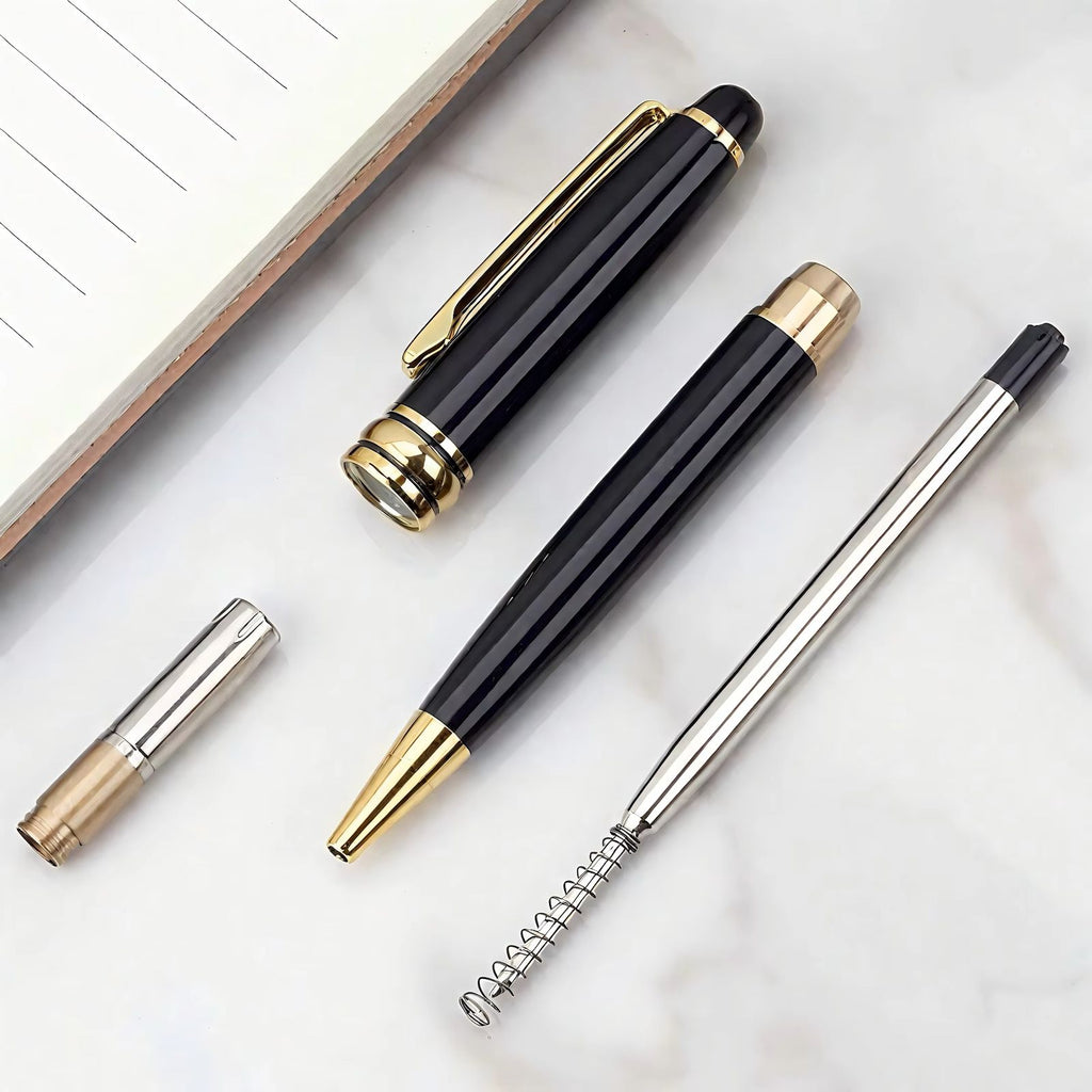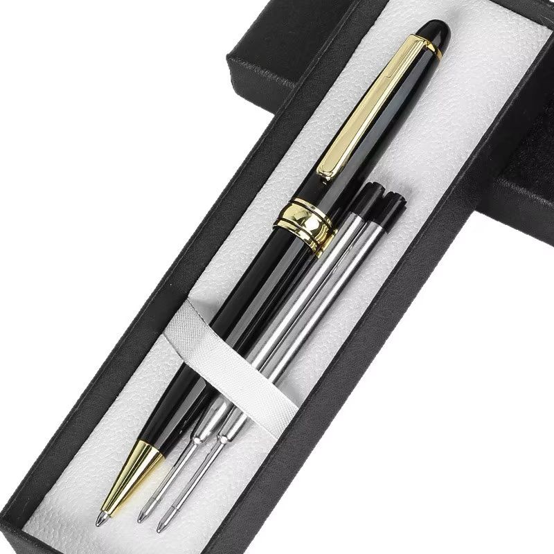 CANETA ESFEROGRÁFICA PRETA COM CLIPE DOURADO COM CAIXA PRESENTE