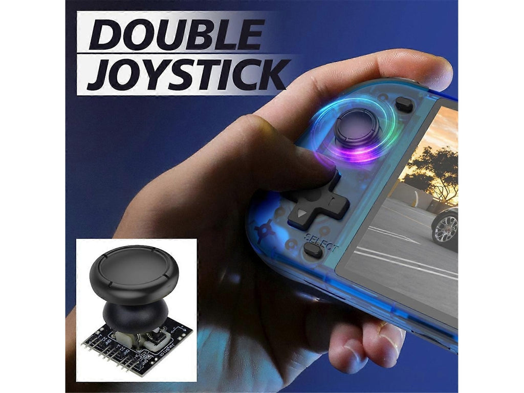 O dispositivo pode se conectar a um módulo Wi-Fi externo via OTG para acessar a internet e jogar online com outro dispositivo na rede local.\nBateria de longa duração Bateria de polímero de 4200mAh integrada. A bateria possui proteção bidirecional contra sobrecarga e descarga. Jogue por até 8 horas com uma única carga completa.\nJoystick duplo Design curvo requintado do joystick. Você pode escolher o joystick correspondente de acordo com o jogo.\nBotão de combinação superior Teclas L/R aprimoradas com quatro botões, curvatura e espaçamento adequados. Melhore a aderência e a liberação dos dedos para uma melhor experiência de jogo.\n\nSubstâncias químicas de alto risco Nenhuma\nTecnologia de detecção de movimento Portátil\nTipo de jogo Clássico\nCapacidade da bateria mAh 4200\nCategoria Consoles de jogos portáteis\nResolução da tela 800x480\nTipo de tela IPS\nTamanho da tela 5,1 polegadas\nMemória 128g\n(A impressão no produto pode variar dependendo do lote, mas isso não afeta o uso.)\nCor Azul\nMaterial ABS\n\nConteúdo da embalagem\n1 Console de jogos portátil retrô\n\nApenas o conteúdo da embalagem acima está incluído outros produtos não estão inclusos.\n\nObservação A reflexão da luz e as diferentes telas podem fazer com que a cor do item na imagem seja um pouco diferente da cor real. O erro de medição permitido é de /- 1-3 cm.